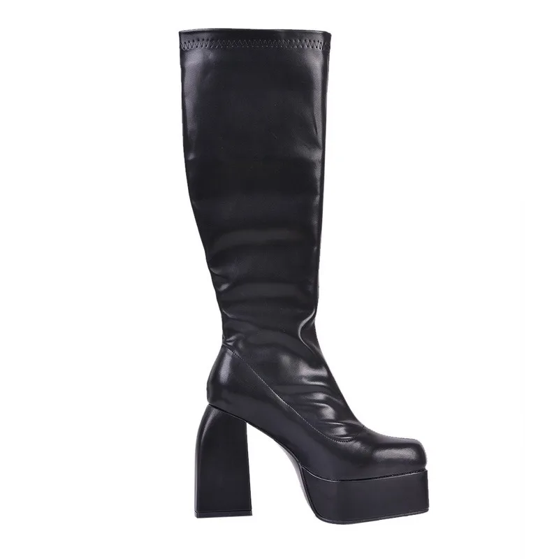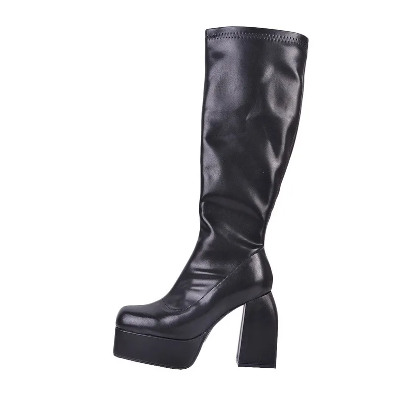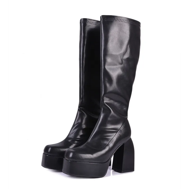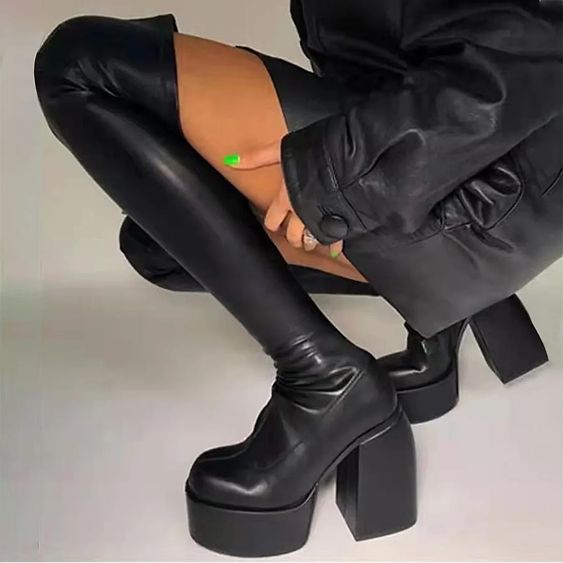 Женские сапоги выше колена на платформе и высоком каблуке, уличные ...