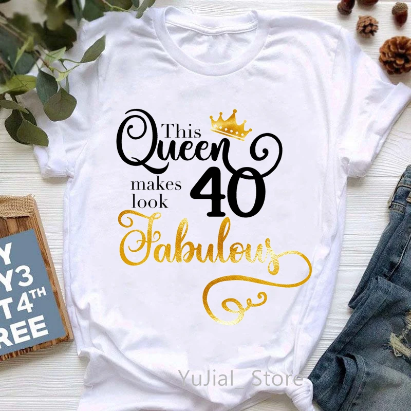 Футболка женская с графическим принтом, Сказочная рубашка с надписью Эта королева сейчас 30405060 лет, подарок на день рождения, золотистый цвет