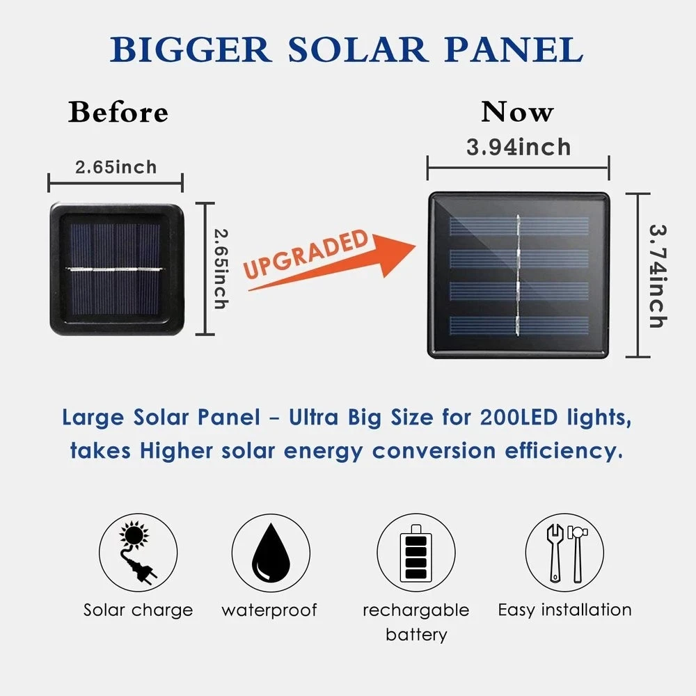 Цвет: теплый белый/холодный белый/РазноцветныйИсточник питания: СолнечнаяПанели солнечные: 0,6 WАккумулятор: 600 мАПосылка1 * светодиодная гирлянда