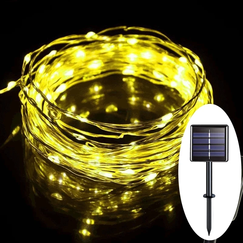 Светодиодная гирлянсветильник на солнечной батарее, медный провод для дома и сада, уличная лампа с питанием от USB, праздничное украшение на Рождество, вечеринку