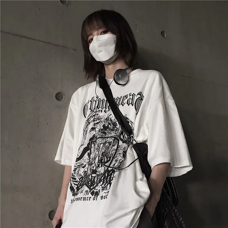 Женская футболка QWEEK в готическом стиле, белая футболка большого ...