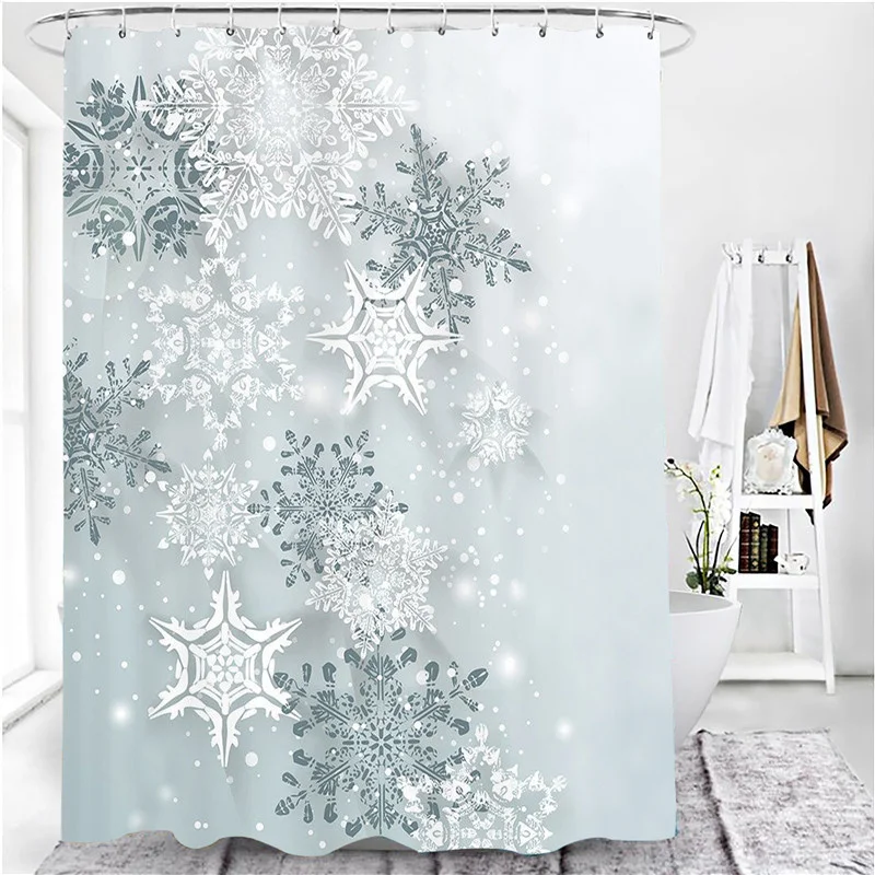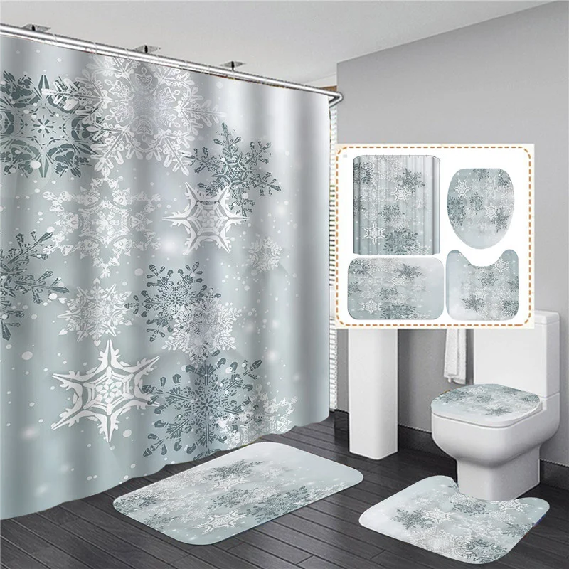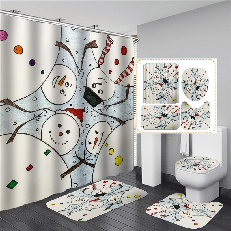 Набор рождественских занавесок для душа со снежинками, нескользящий коврик с принтом снеговика для ванной комнаты, 4 шт., комплекты для купания, чехол для унитаза, коврик, фланелевый ковер