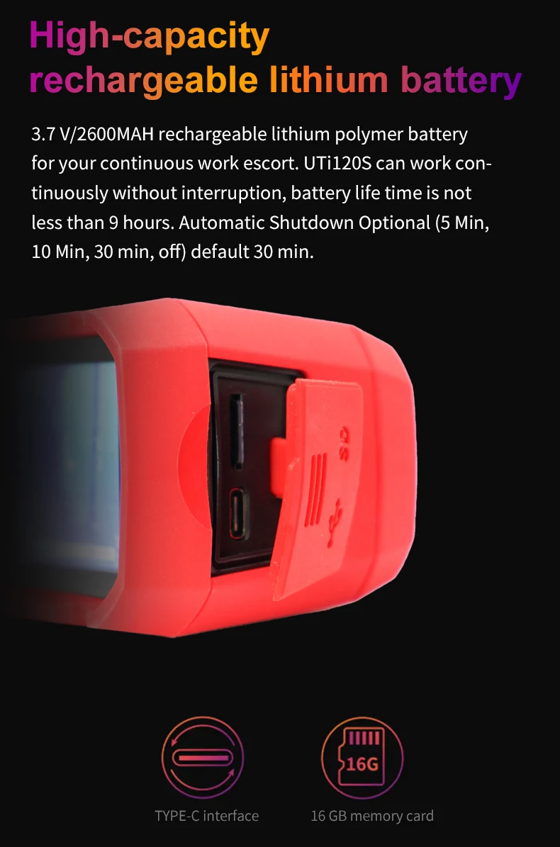 ● Инфракрасное Разрешение: 120 × девяносто● Диапазон измерения температуры: - 20 ~ 400 ℃● Режим измерения температуры: центральная точка, отслеживание высоких и низких температур● Хранение фотографий: карта TF 16 Гб● Сигнал тревоги высокой и низкой температуры: изображение, звуковой сигнал, светодиодный мигающий сигнал● Лазерная индикация/светодиодный светильник● Три дизайна: IP54/два метра Предотвращение падения● Программное обеспечение для анализа ПК● Шесть вариантов палитры● Регулируемая излучательная способность● Время работы не должно быть менее 9 часов● 3,7 v/2600mah перезаряжаемая литиевая батарея● Нижняя конструкция ¼ винтовых отверстий может использоваться с штативом
