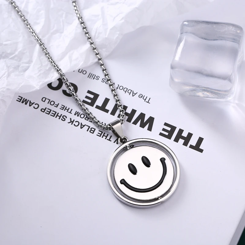 2021 Очаровательная круглая подвеска из титановой стали с улыбающимся лицом для мужчин и женщин, Классическая бижутерия в стиле панк, хип-хоп, модный круглый кулон, подарок на день рождения