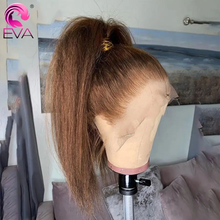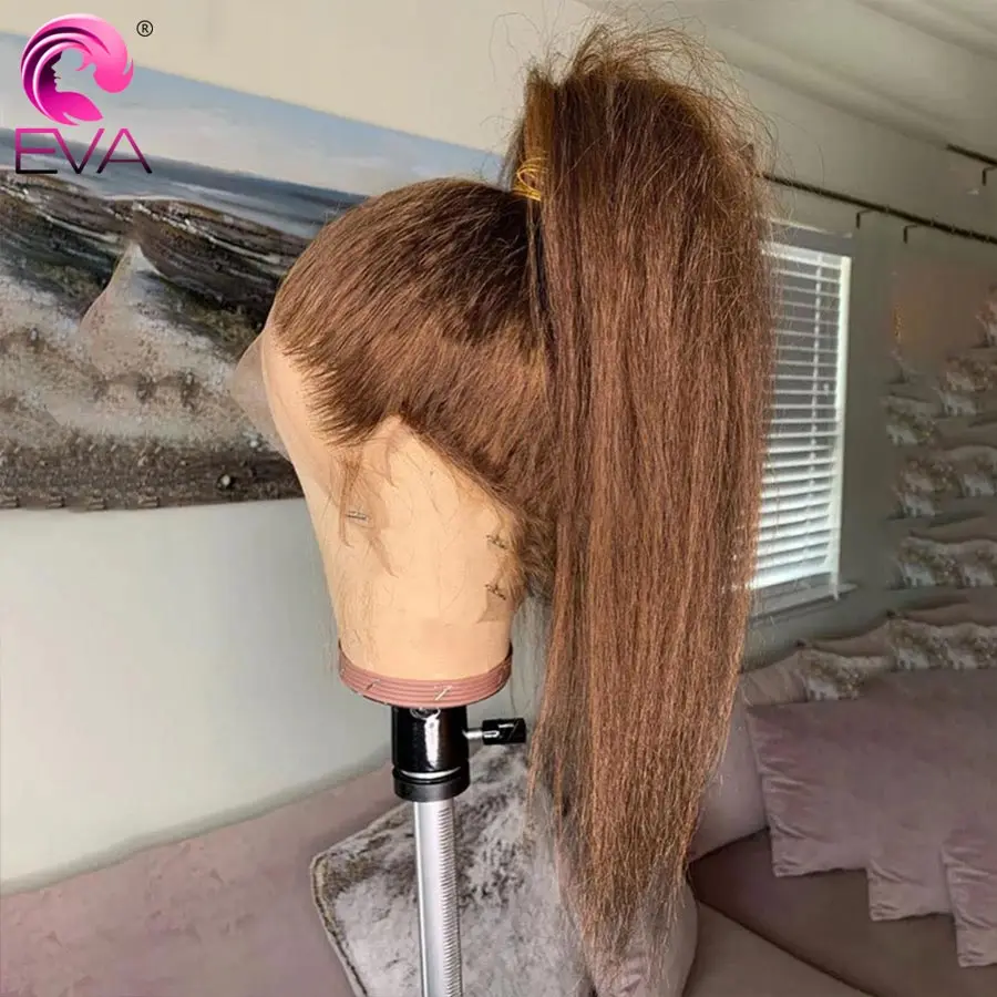 Парик из ЭВА, коричневый парик, курчавые Прямые Цветные парики из человеческих волос на сетке спереди для женщин, прозрачный коричневый парик на сетке спереди, 30 дюймов, парик на сетке