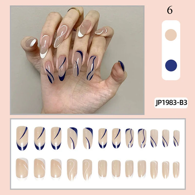 Накладные ногти, 24 шт., цвета голубого миндаля, с полным покрытием...