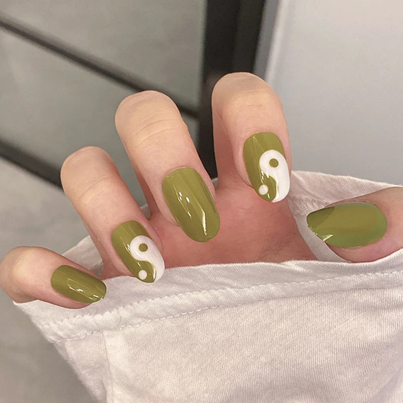 Съемные накладные ногти из зеленого миндаля, акриловые круглыезаост...
