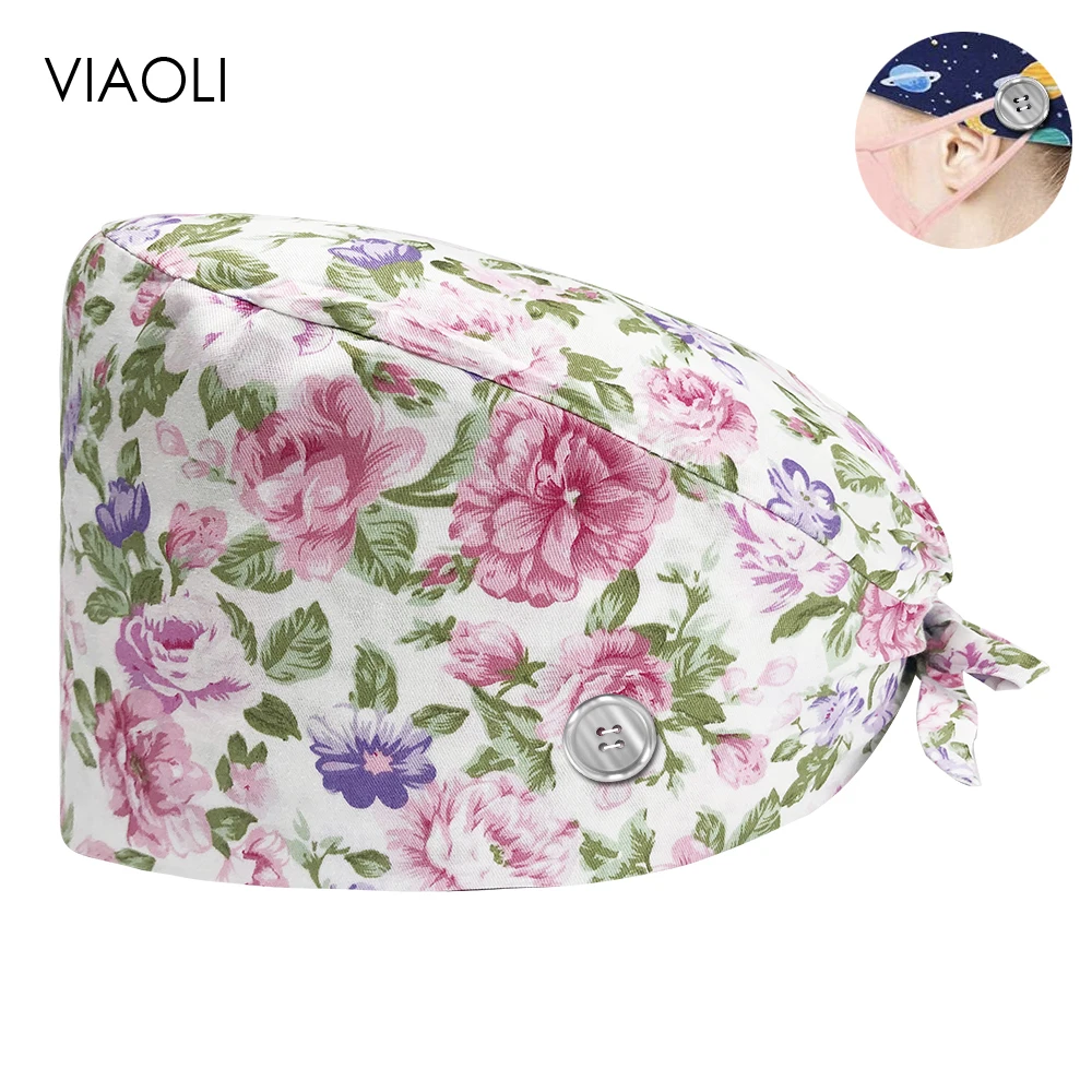 Высококачественная шапка-скраб для медсестер с цветочным принтом и ...