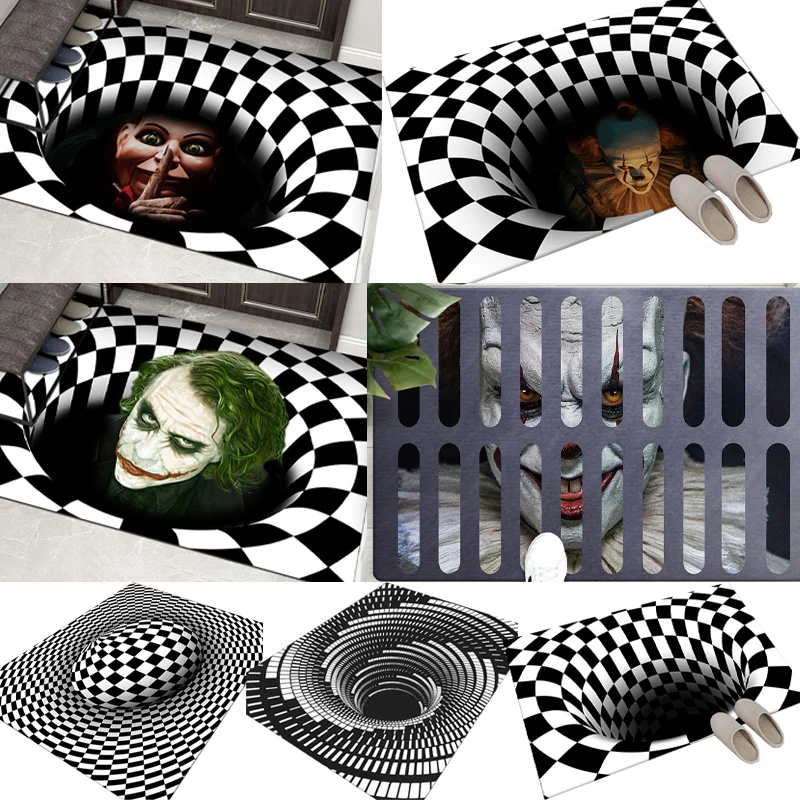 3d-ловушка для клоунов, влагопоглощающий дверной коврик, украшения для Хэллоуина, крышка для прихожей в доме, Забавный ужас для забавного лица, коврик, Прямая поставка