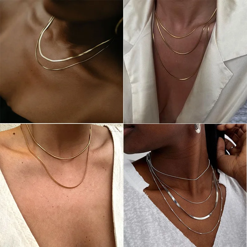 Ожерелье женское Vnox, золотистое металлическое минималистичное ожерелье-змея из нержавеющей стали, круглая цепочка-змейка