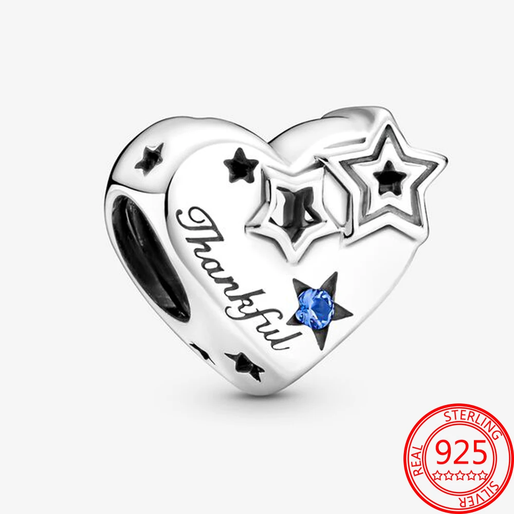 Оригинальный бренд 925 пробы Серебряное благодарное сердце и синие звезды бусины подходят для браслета Пандоры ожерелье прекрасные подарки