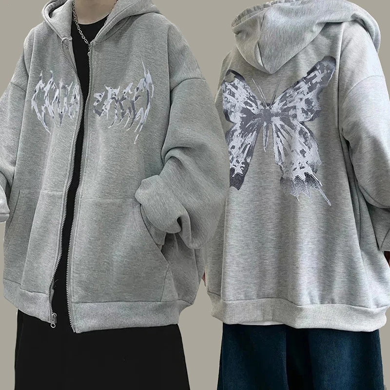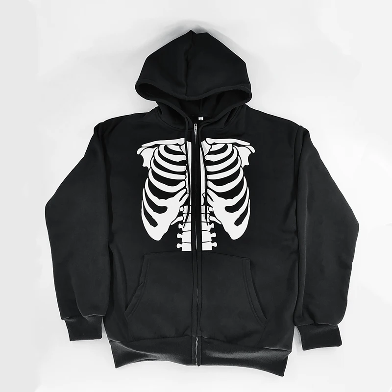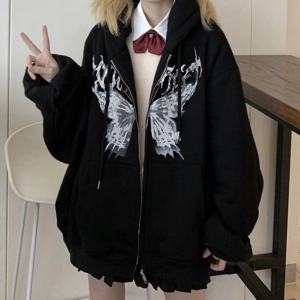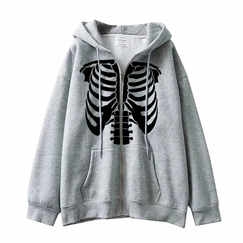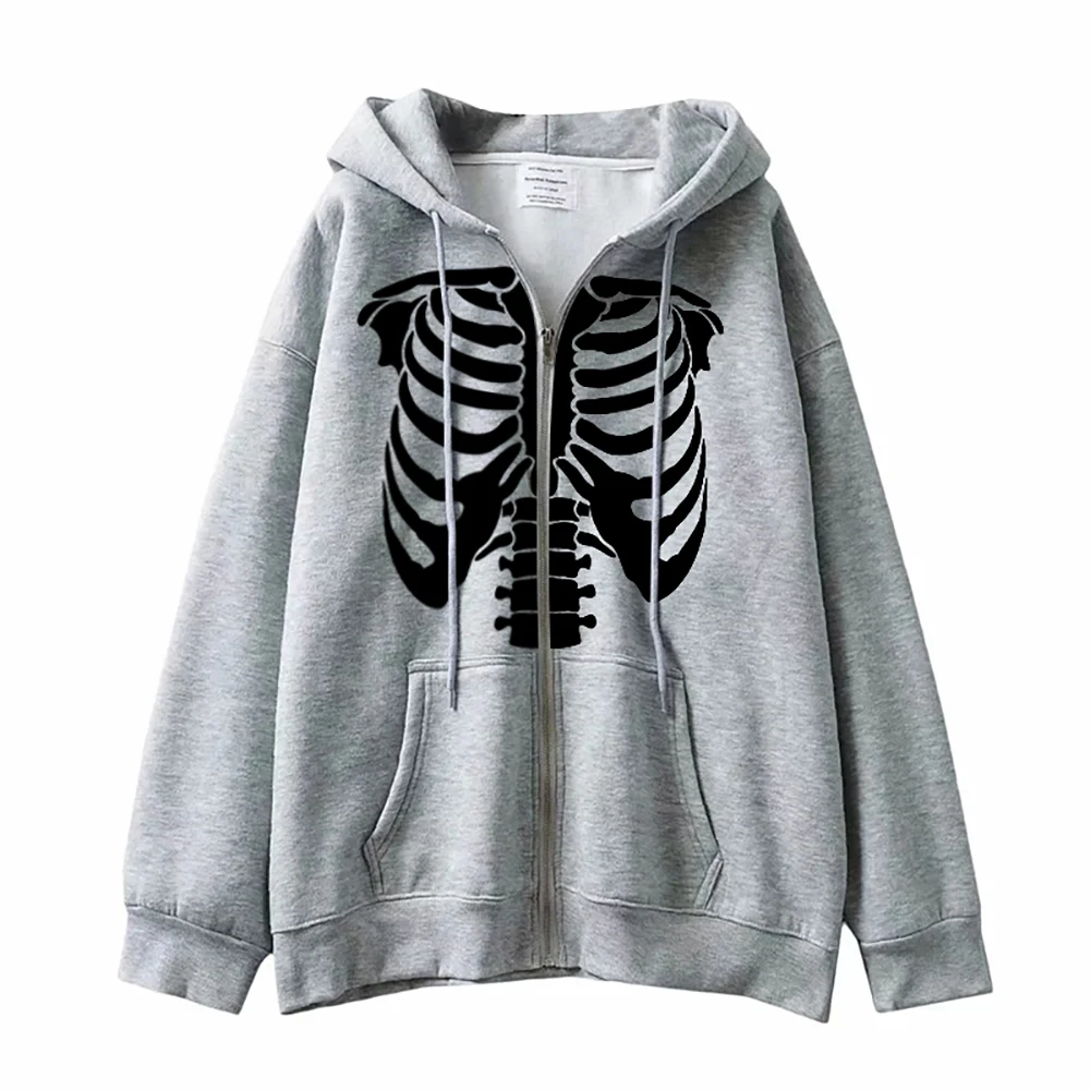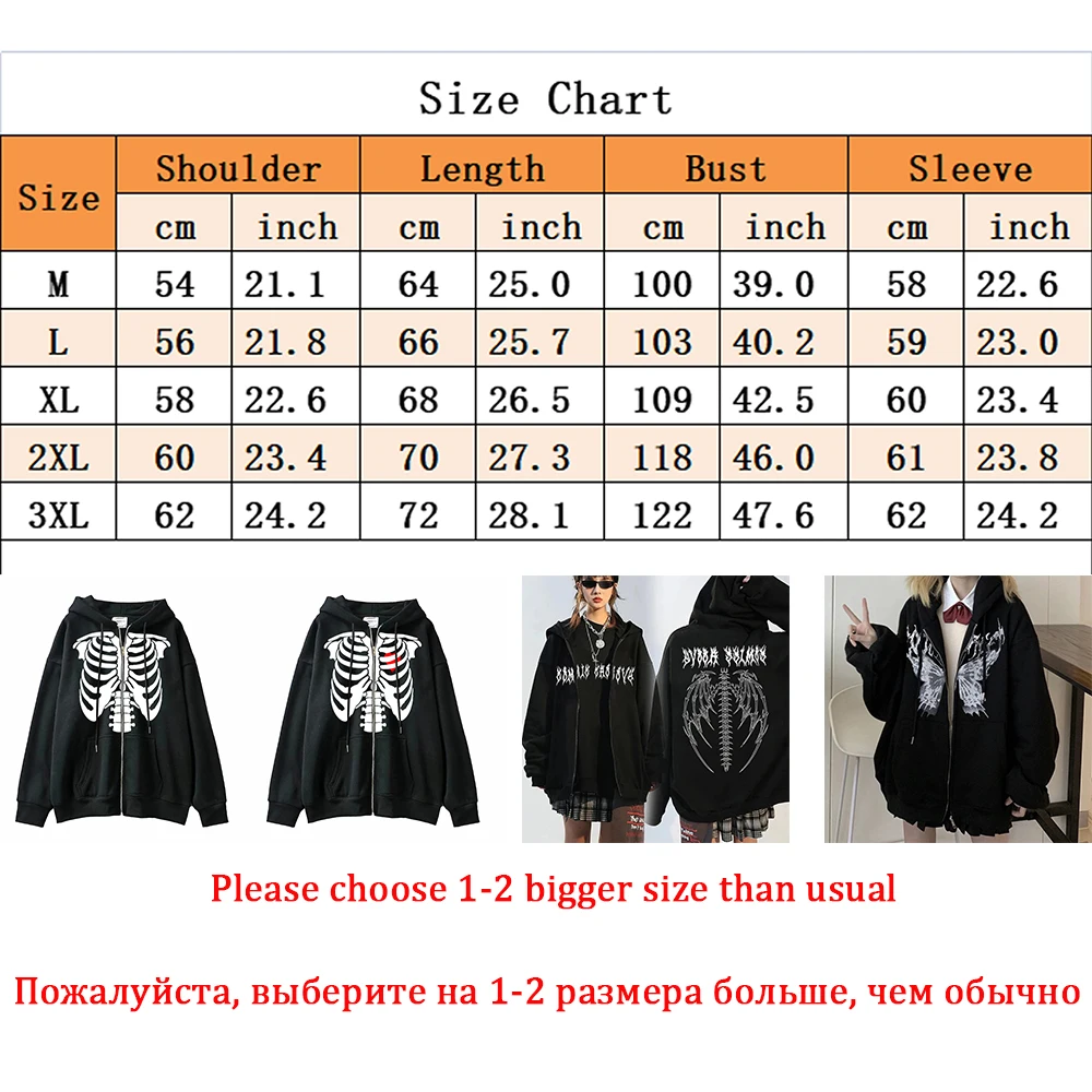 Толстовка Y2K в стиле Харадзюку, свитшот на молнии с длинным рукавом, с принтом черепа, аниме куртка с капюшоном, Готическая свободная уличная одежда, большие размеры