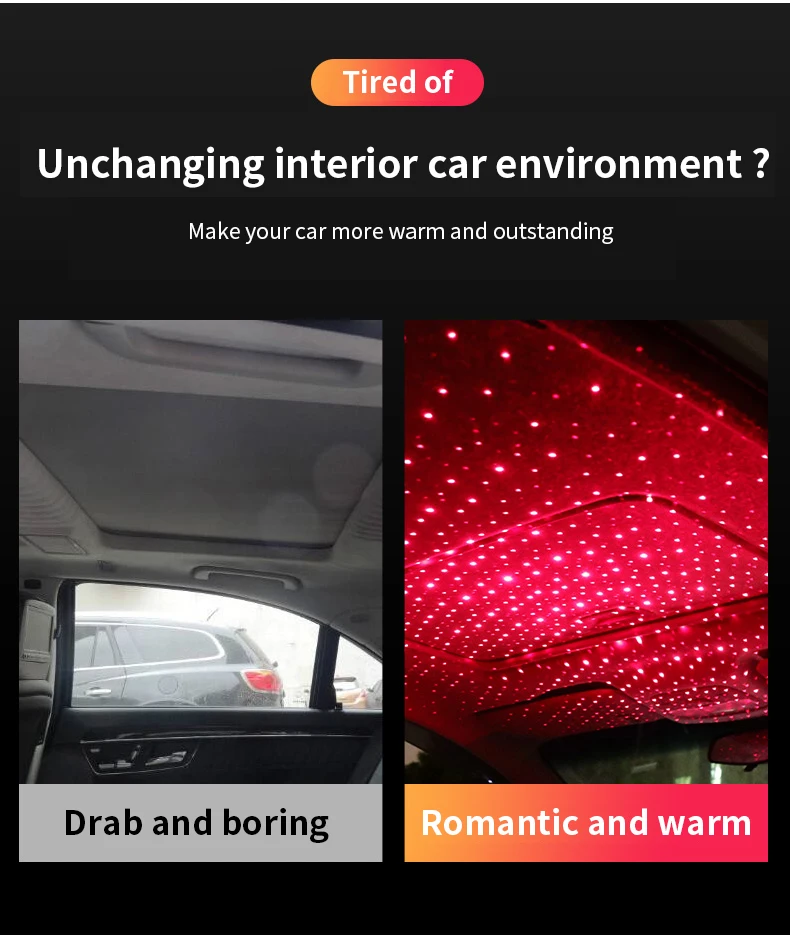 ★【Чудесное освещение effect】автомобильные Звездные огни на крыше, красная лазерная проекция звездного неба создают модный романтичный образ, визуальное наслаждение.