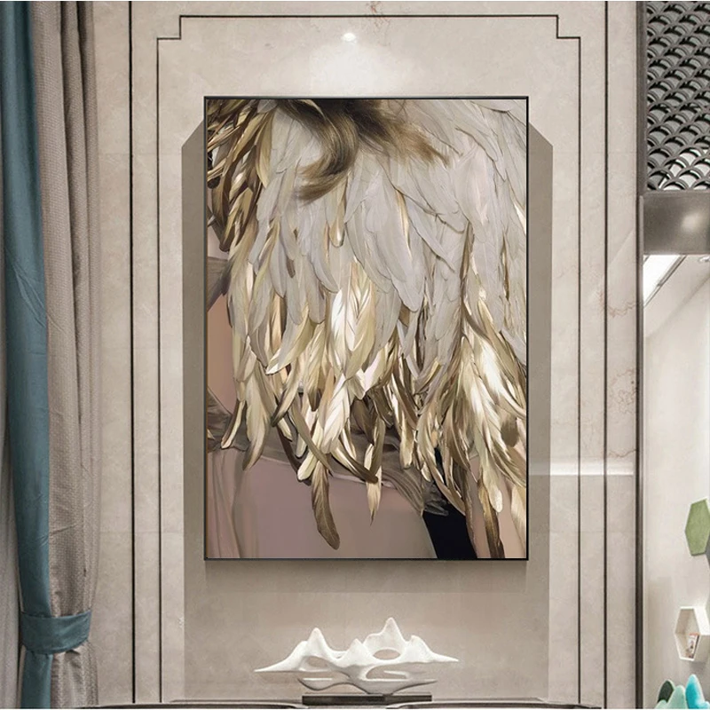 Абстрактные картины маслом с желтыми перьями, картины на холсте, ху...