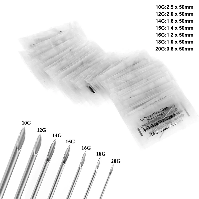 100 шт. иглы для пирсинга разных размеров 12 г 14 г 16 г 18 г 20 г ...
