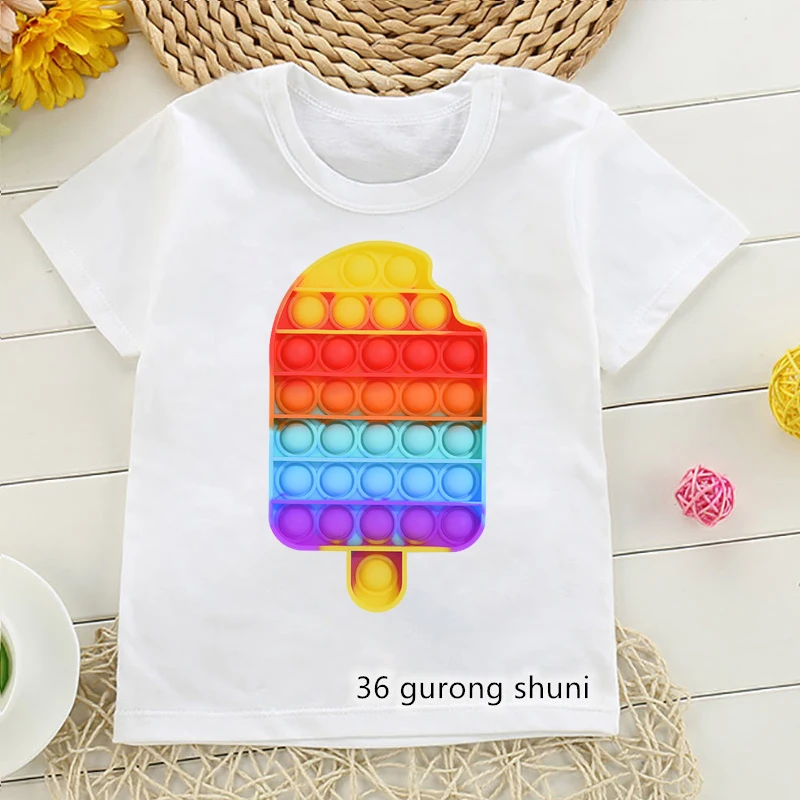 Забавные красочные игрушки-фиджеты с мороженым, футболка, пуш-пузырьки, сенсорные игрушки, футболка поп ит, футболка с рисунком мороженого для мальчиков и девочек, топы