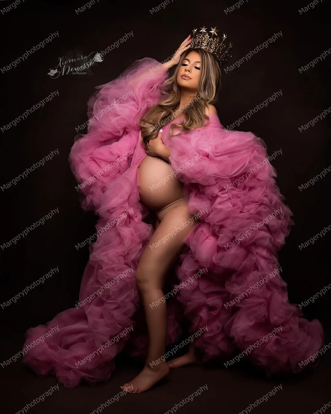 Очаровательные фатиновые платья фуксии для беременных для фотосъемк...