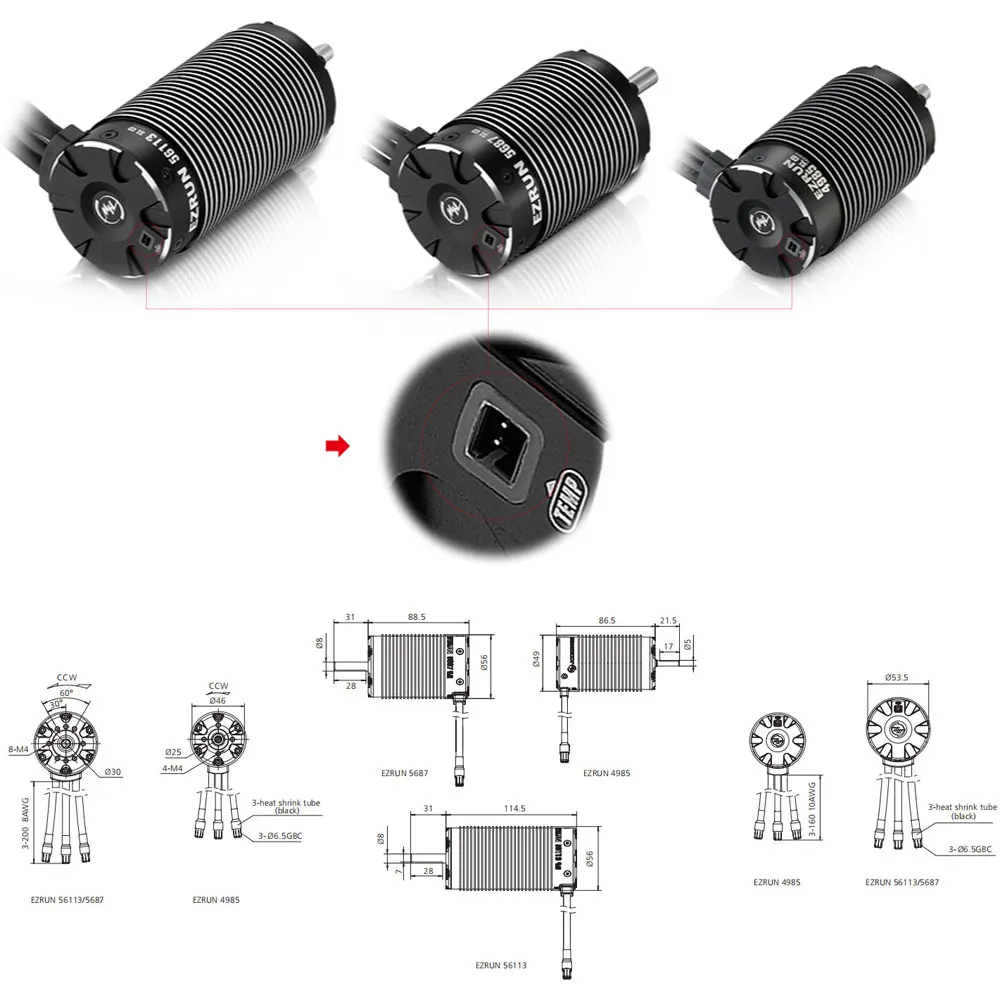 • Этот двигатель EZRUN идеально подходит для HOBBYWING EZRUN MAX6/5 ESC.