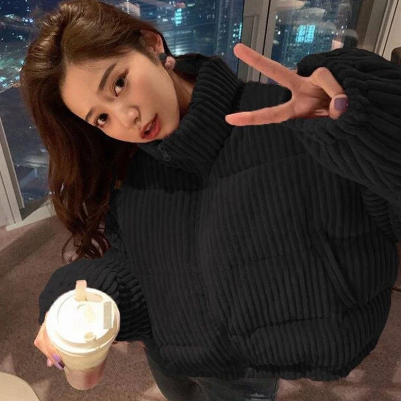 Зимние винтажные вельветовые парки, толстые женские теплые свободные повседневные хлопковые куртки с подкладкой, Женские однотонные черные элегантные пуховики New2022