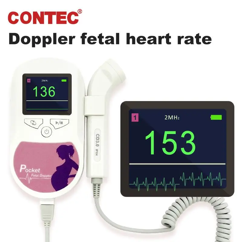 Монитор сердечного ритма плода CONTEC, допплер с подсветкой, ЖК-дисплей, розовыйсиний, 2 МГц, 3 МГц, зонд, Детское сердце