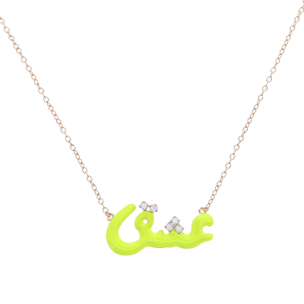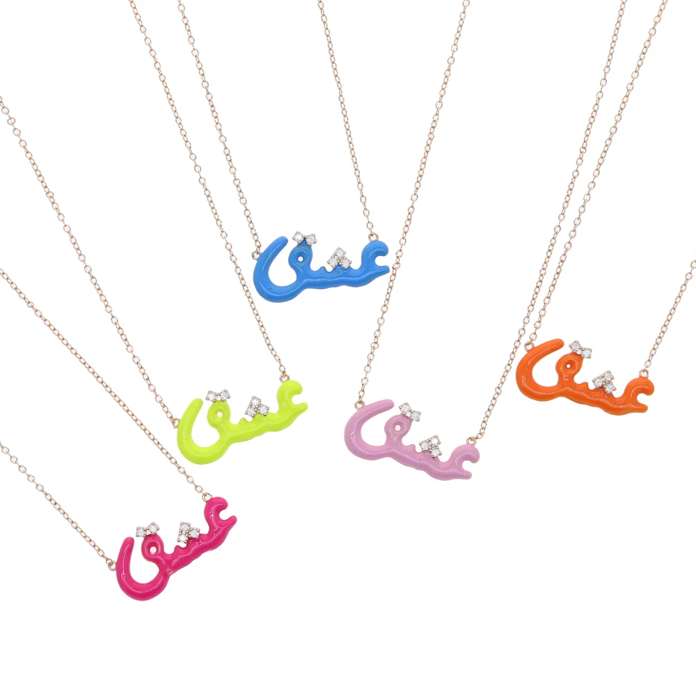 Розовое золото цвет конфетный неоновый цвет красочная эмаль 2021 модное женское колье для девушек арабское слово БУКВЕННОЕ ожерелье с подвеской
