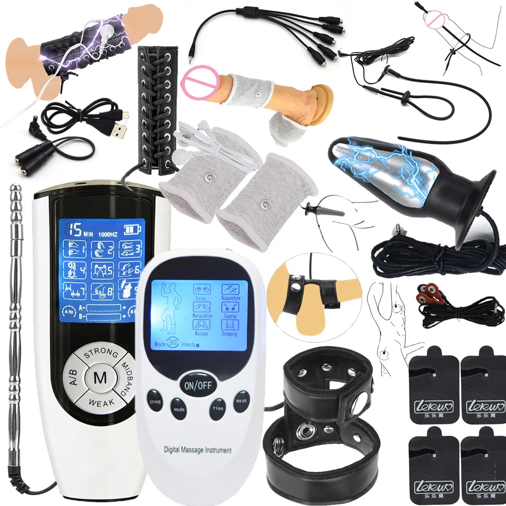 USB зарядка электро шок Анальная пробка электрическая стимулирующая уретральная пробка для пениса кольцо массажная подушка SM для мужчин Целомудрие Секс Медицинский Набор инструментов