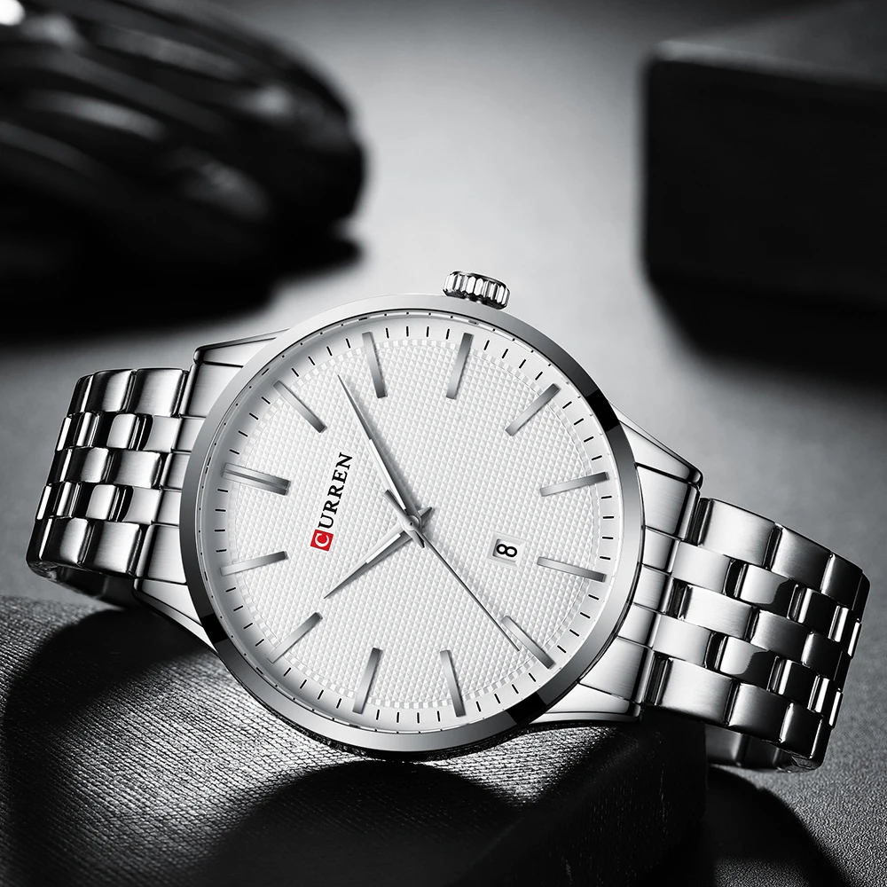 Часы наручные CURREN мужские кварцевые, модные спортивные повседневные деловые, с автоматической датой, из нержавеющей стали