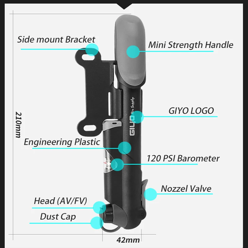 Велосипедный насос Giyo, ручной портативный насос для накачки шин, VFV, для горных и дорожных велосипедов