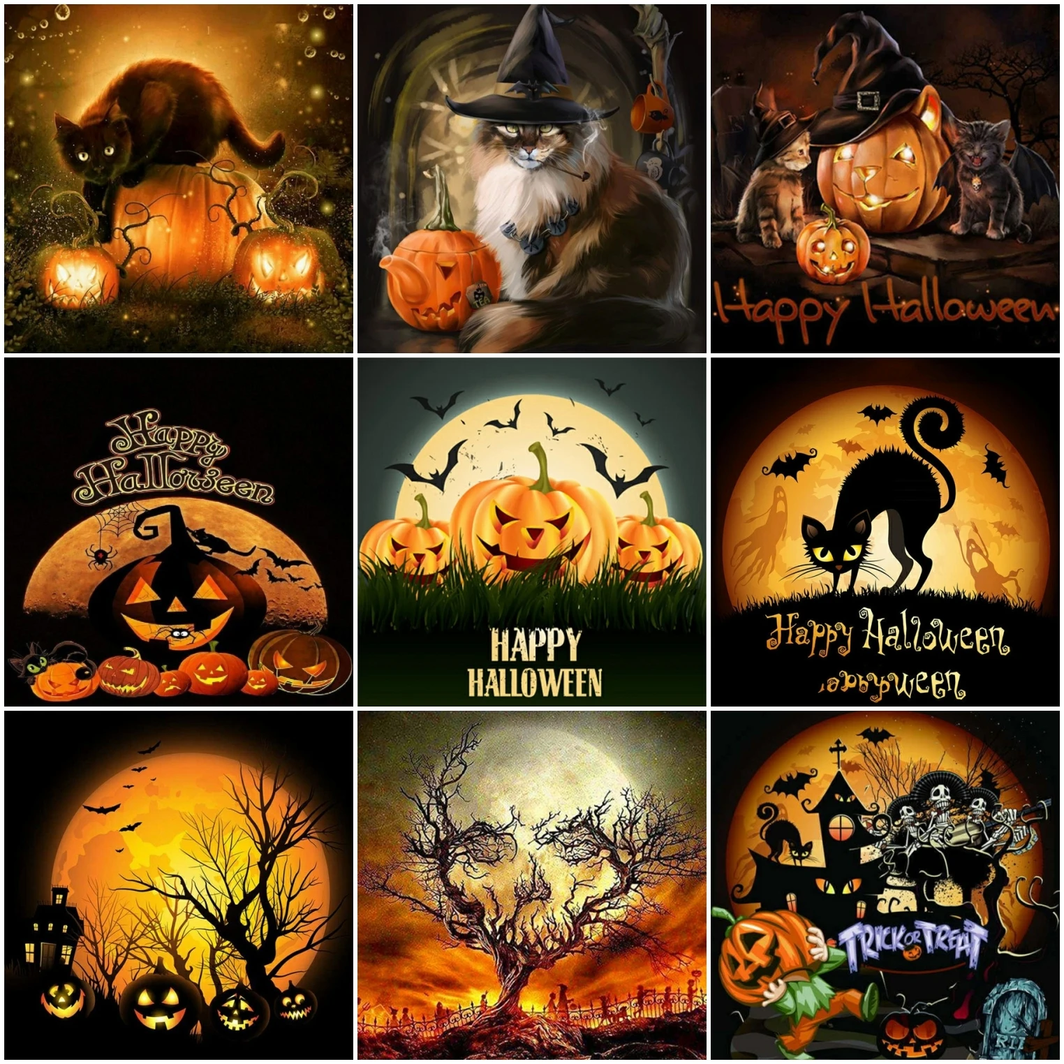 Алмазная живопись 5D сделай сам на Хэллоуин, мозаика с животными, п...
