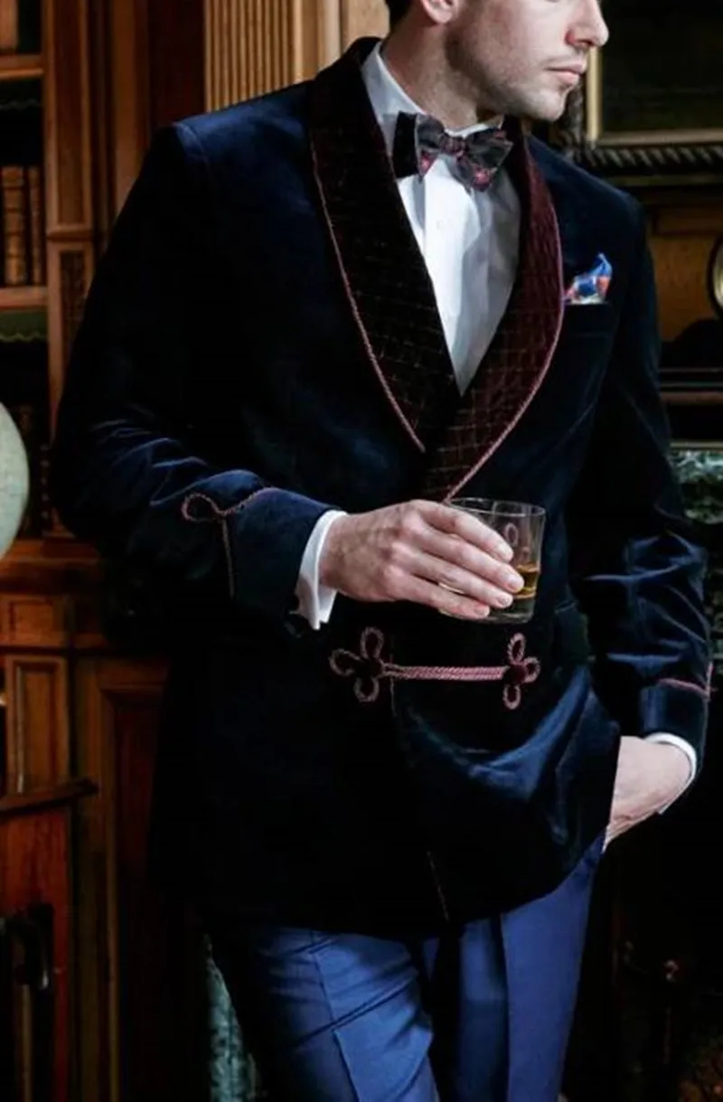 (1 куртка) темно-синие бархатные куртки для курения блейзер с отворотом строгие смокинги свободный ретро костюм для ужина вечеринки выпускного Блейзер 173