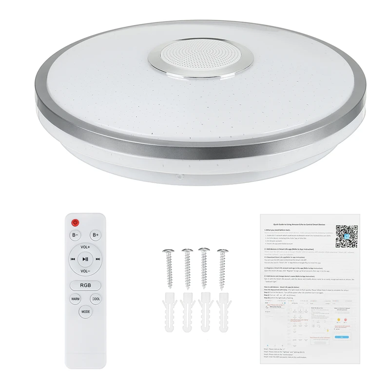 Особенности: * Изготовлен из толстого акрила Высококачественная светодиодная микросхема, что обеспечивает длительный срок службы и прочность в использовании. * Умное управление светильник щением можно управлять различными методами, такими как настенный выключатель, Мобильный bluetooth и пульт дистанционного управления, что обеспечивает более удобное управление им. * Многофункциональный режим работы: есть множество режимов: белый светильник, теплый светильник, нейтральный светильник, сплошсветильник, сценические режимы, такие как музыкальный ритм, градиент, красочный мигающий свет для гибкого удовлетворения ваших различных потребностей, очень практично для повседневной жизни. * Мобильный bluetooth может регулировать яркость, менять цвет, пульт дистанционного управления может включать и выключать свет, регулировать яркость и цвет, воспроизводить песни, регулировать громкость, это такой умный потолочный светильник, который изменит вашу концепцию потолосветильник, Это как верный компаньон, который позаботится о вашем настроении. * Энергосбережение: благодаря яркому мощному светодиодному источнику светильник, значительно экономит мощность по сравнению с тем же уровнем яркости, что и обысветильник, не применяемый светодиодный чип, экологически чистый. Характеристики: Диаметр: 30 см Светодиодный да: 2835SMD Напряжение: AC180-265V/110-265 в Материал: крышка ПК + железо Цветовая температура: 3000-6500 К Цвет светильник: белый, теплый белый, RGB Режим управления: настенный выключатель + мобильное управление bluetooth + пульт дистанционного управления + Wi-Fi Режимы светильник: настройка на тусклый или яркий, музыкальный ритм, градиент, красочный мигающий свет Применение: Для детской комнаты, спальни, гостиной, конференц-зала, кухни, гостиной, холла, кухни, ванной комнаты, прихожей, лестницы, мастерских, выставок и т. д. Упаковочный лист: 1 светодиодный потолочный светильник 1 сумка для аксессуаров 1 пульт дистанционного управления