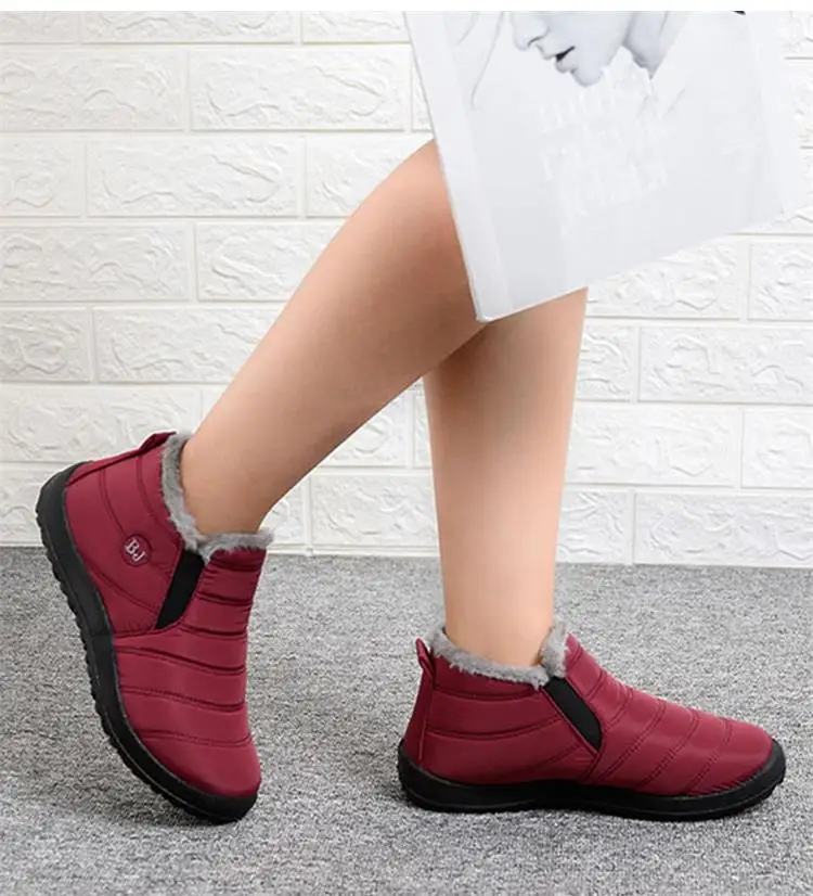 Женские ботинки, водонепроницаемые зимние ботинки, женские модные зимние ботинки, обувь с круглым носком, Женская сохраняющая тепло женская обувь, женская обувь без застежки