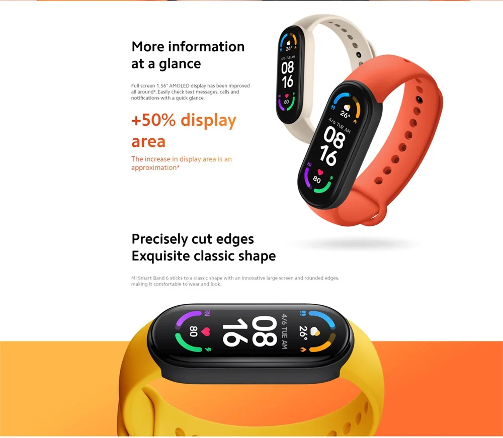 Смарт-браслет Xiaomi Mi Band 6 с AMOLED дисплеем 1,56 дюйма