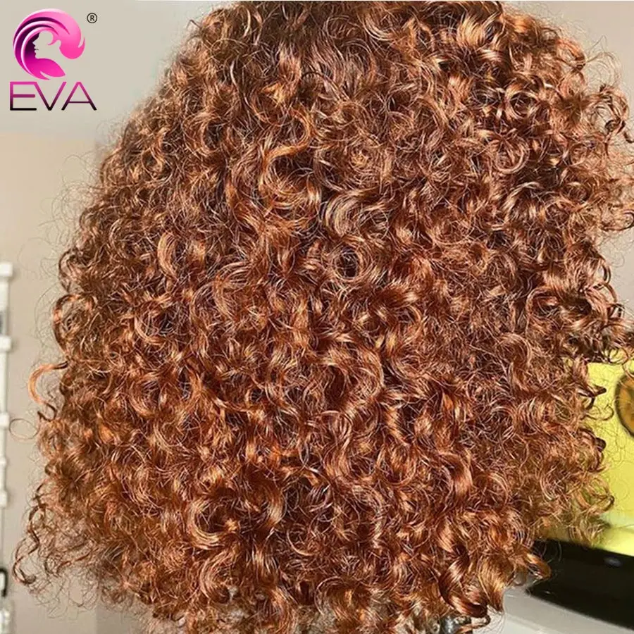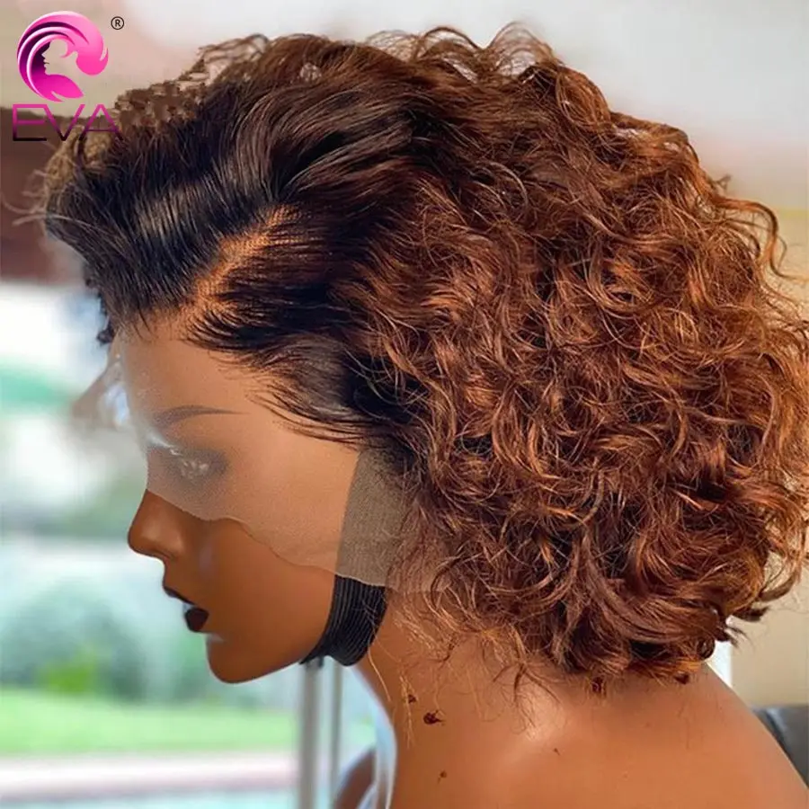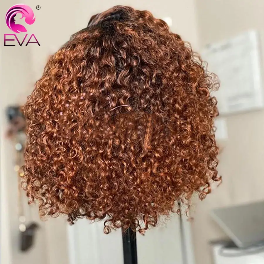 Цветные Короткие парики из ЭВА с эффектом омбре, афро кудрявые вьющиеся парики 13x6, парики из человеческих волос на сетке спереди, предварительно выщипанные бразильские коричневые парики на сетке спереди