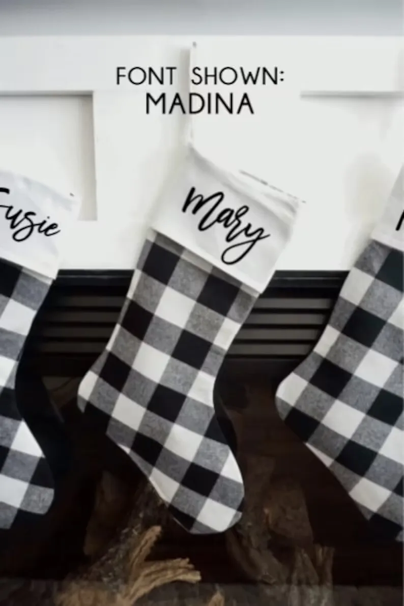 Рождественские 2022 клетчатые рождественские чулки в стиле буйвола, персонализированные рождественские чулки черно-белого цвета с именем на заказ, рождественские чулки
