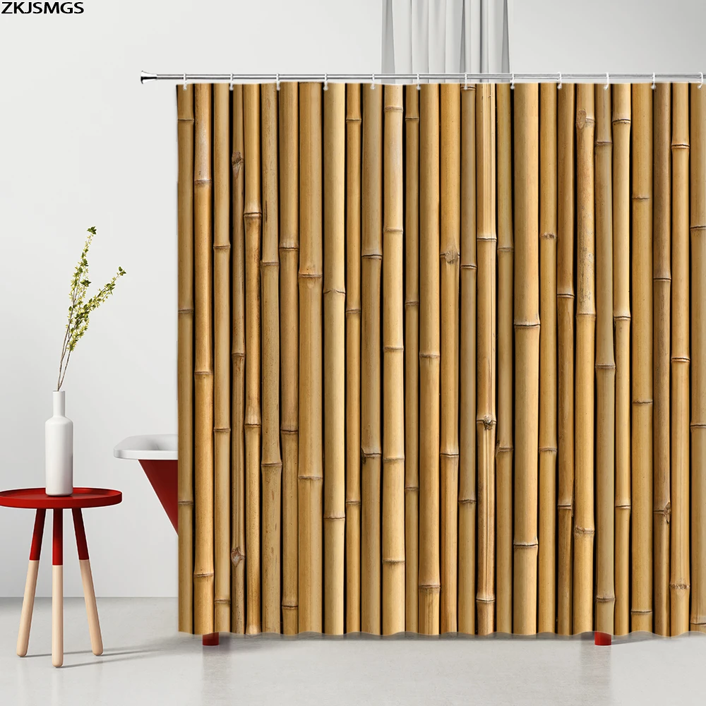 Набор штор для душа из китайского зеленого бамбука, печать текстуры древесных волокон ковриков для ванной, для кухонной и входной двери ковриков, для украшения ванной комнаты ковриков