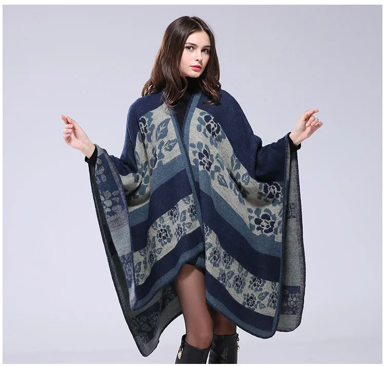 Женский кашемировый шарф HanXi, зимний теплый шарф-пончо с рукавами...