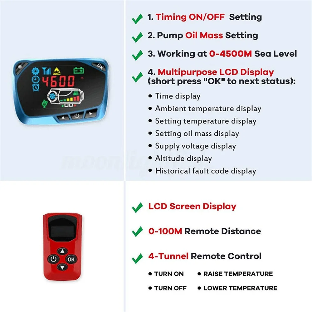 5000W 12V Дизельный подогреватель воздуха все в одном ЖК-дисплей для контроля уровня сахара в крови с пультом дистанционного управления для грузовика, автобуса, лодка