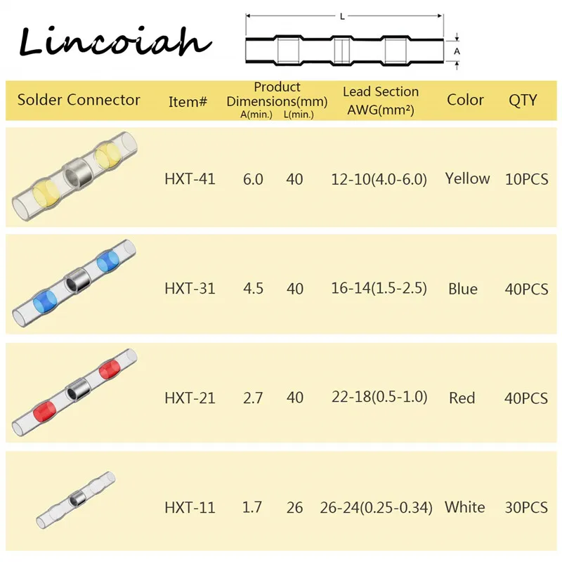 Lincoiah 200/50Pcs Heat Shrink Butt Crimp Terminals Waterproof Solder Seal Electrical Connectors Wire Cable Splice Kit Automotive Marine