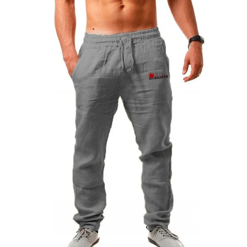 Мужские хлопковые льняные брюки, однотонные дышащие брюки для фитне...