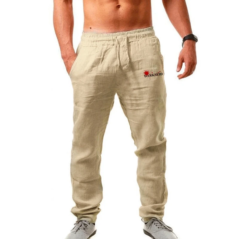 Брюки мужские из хлопка и льна, модные повседневные штаны, свободны...