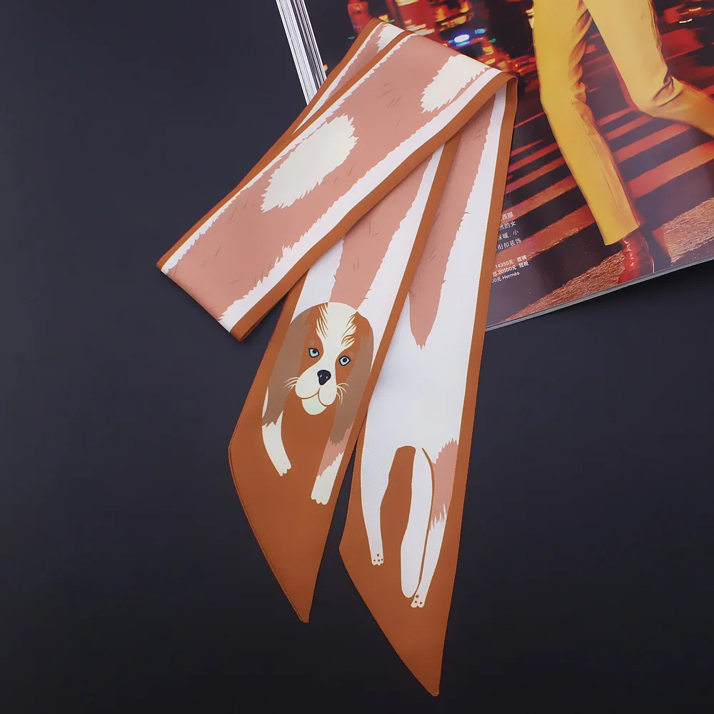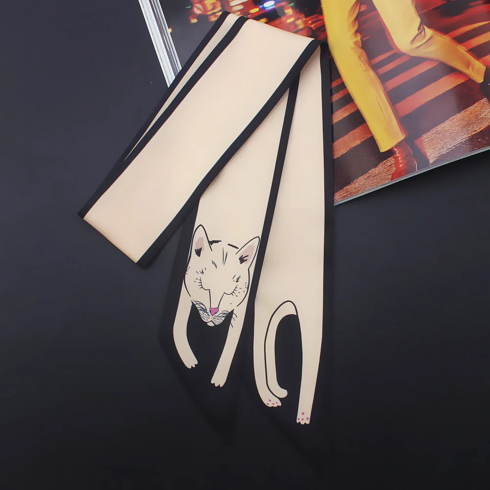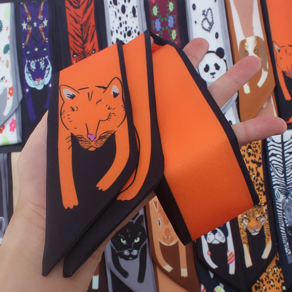 Женский шёлковый шарф с лентами для волос и принтом животных