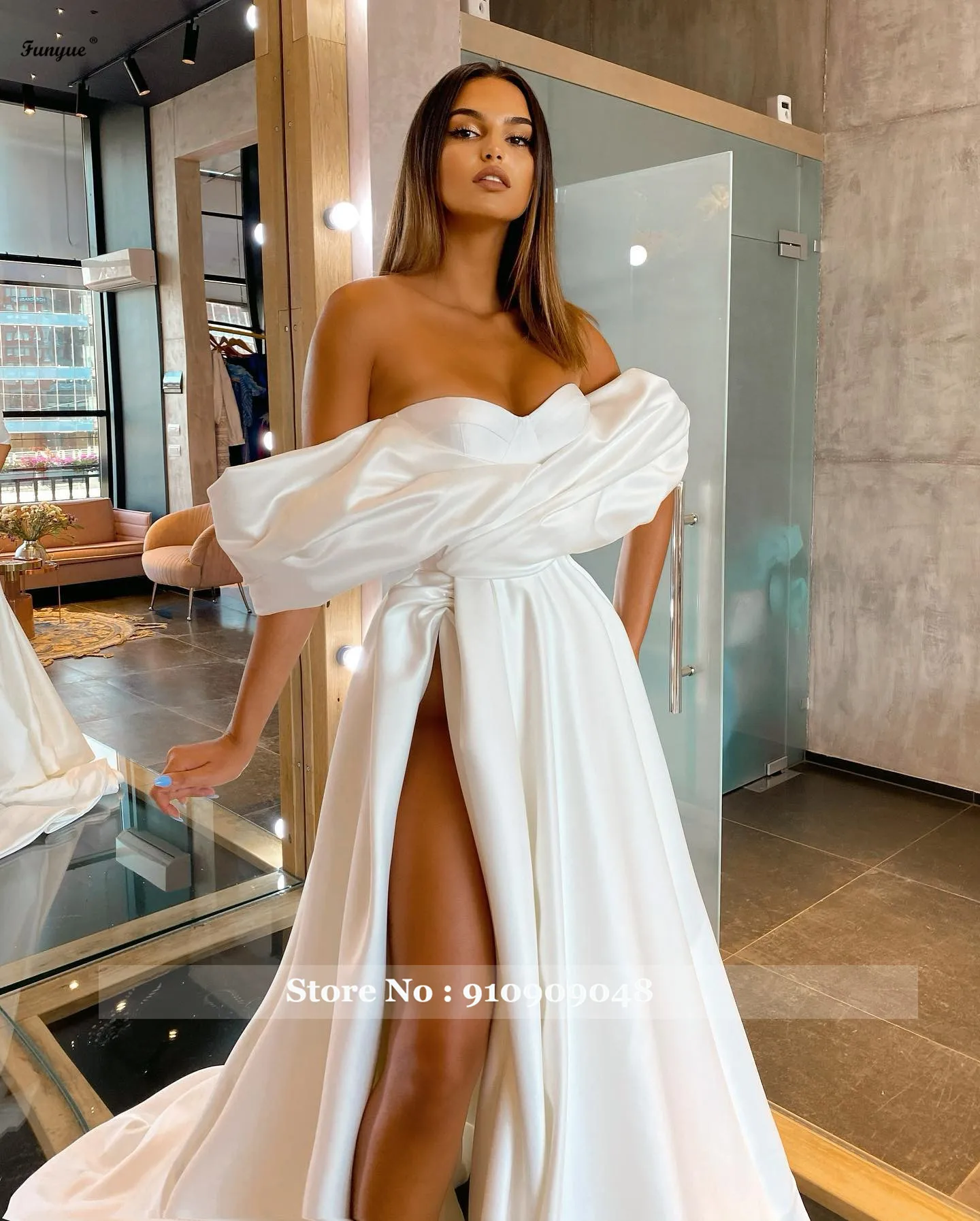 Сексуальное атласное свадебное платье А-силуэта для невесты с высоким разрезом сердечком с открытыми плечами свадебное платье 2021 свадебное платье с пышными рукавами Vestido De Noiva