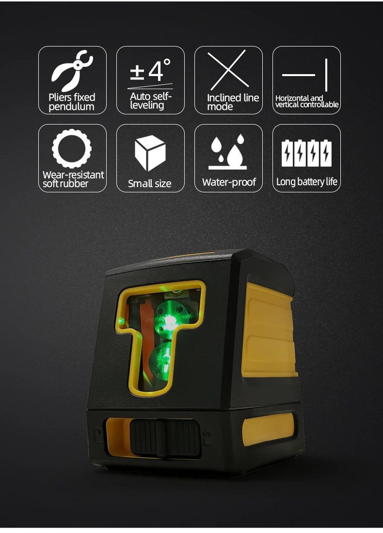 Лазерный уровень, 2 линии, самонивелирующийся нивелир с вертикальными и горизонтальными линиями зеленого и красного цвета