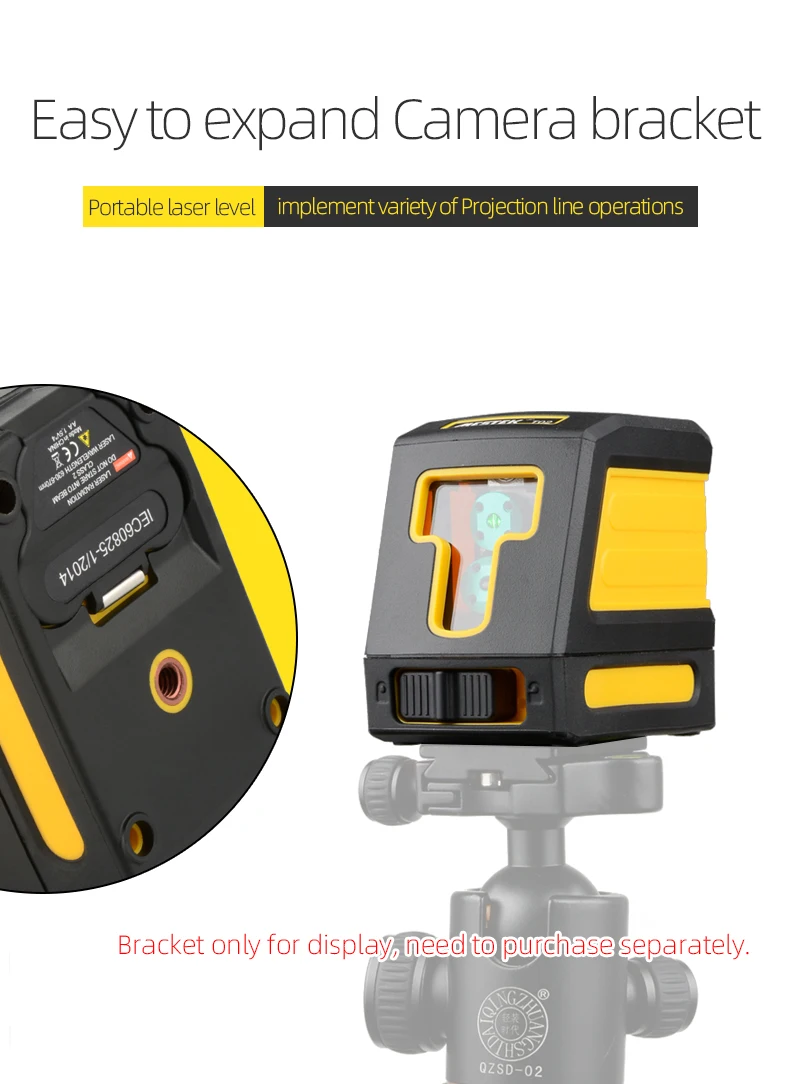 Модель: T01 (красная линия),T02 (зеленая)Мини-лазерный крест: красные лучи/зеленые лучиДлина волны лазера: 630 ~ 670нм (красный)/ 505 ~ 550нм (зеленый)Класс лазера: класс 2 (IEC/EN60825-1/2014)Точность выравнивания: ± 3 мм/10 мГоризонтальная/Вертикальная Точность: ± 3 мм/10 мДиапазон выравнивания/компенсации: 4 ° ± 1 °Рабочее расстояние (линия):15 м для Красного луча/30 м для зеленого лучаРабочее расстояние (линия с детектором): НетВремя работы: 20 часов для красного/8 часов для зеленогоIP Рейтинг: IP54Диапазон рабочих температур:-10 ℃ - 50 ℃Диапазон температур хранения:-20 ℃ - 70 ℃Мощность Источник: 4*1,5 V AA (не входит в комплект)