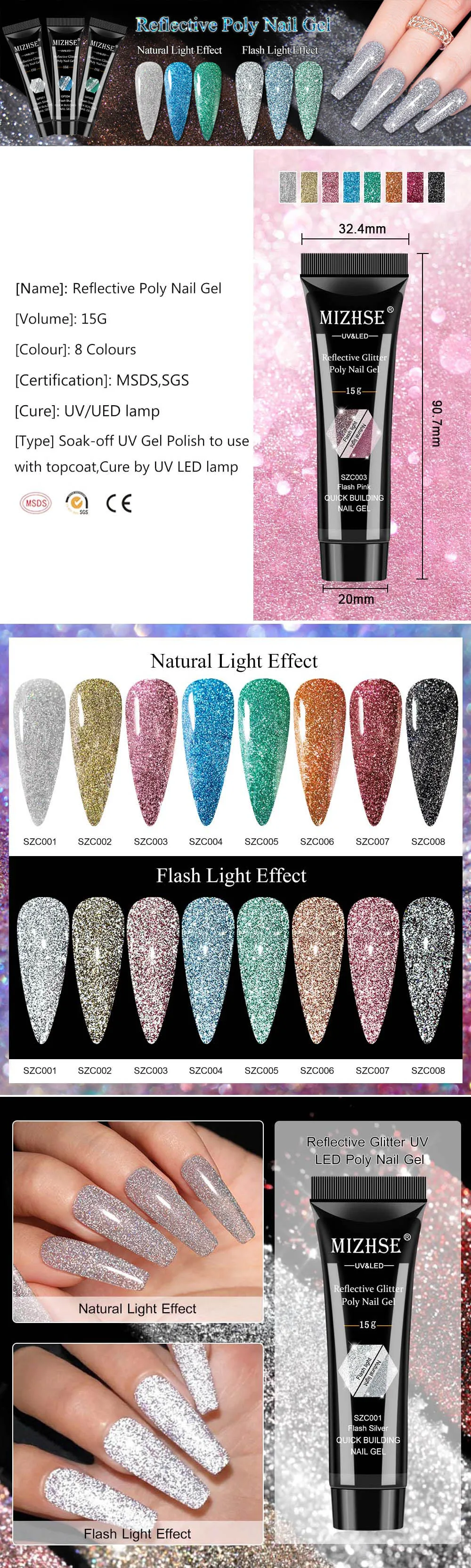 Светоотражающий полигель для ногтей MIZHSE, 15 мл, для наращивания, блестящий Гель-лак, Полупостоянный гибридный УФсветодиодный полигель для ногтей для маникюра