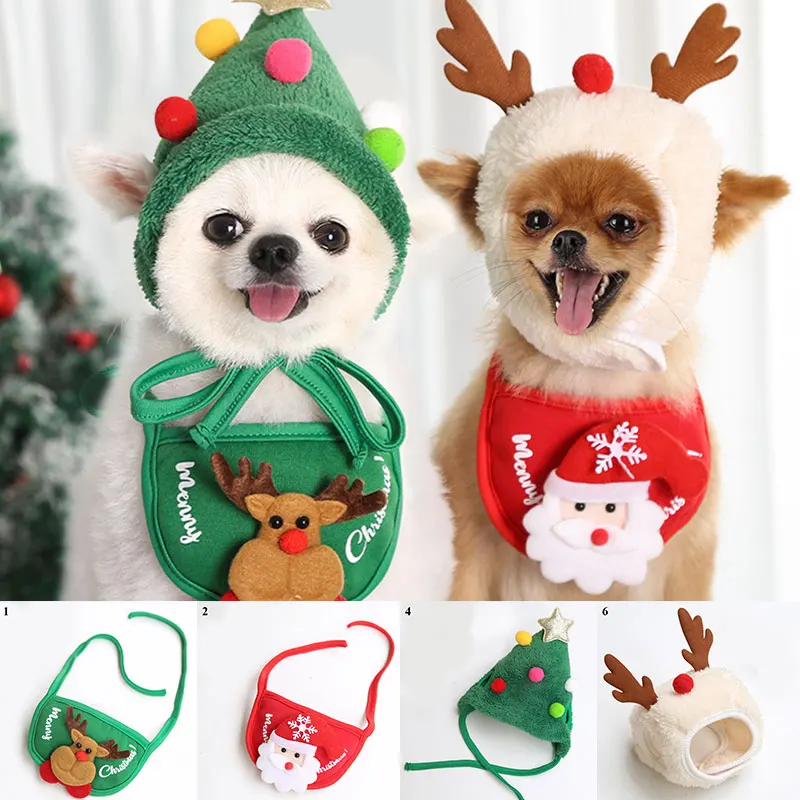 Рождественская шапка для собак и кошек, слюнявчик, Тедди для борьбы...