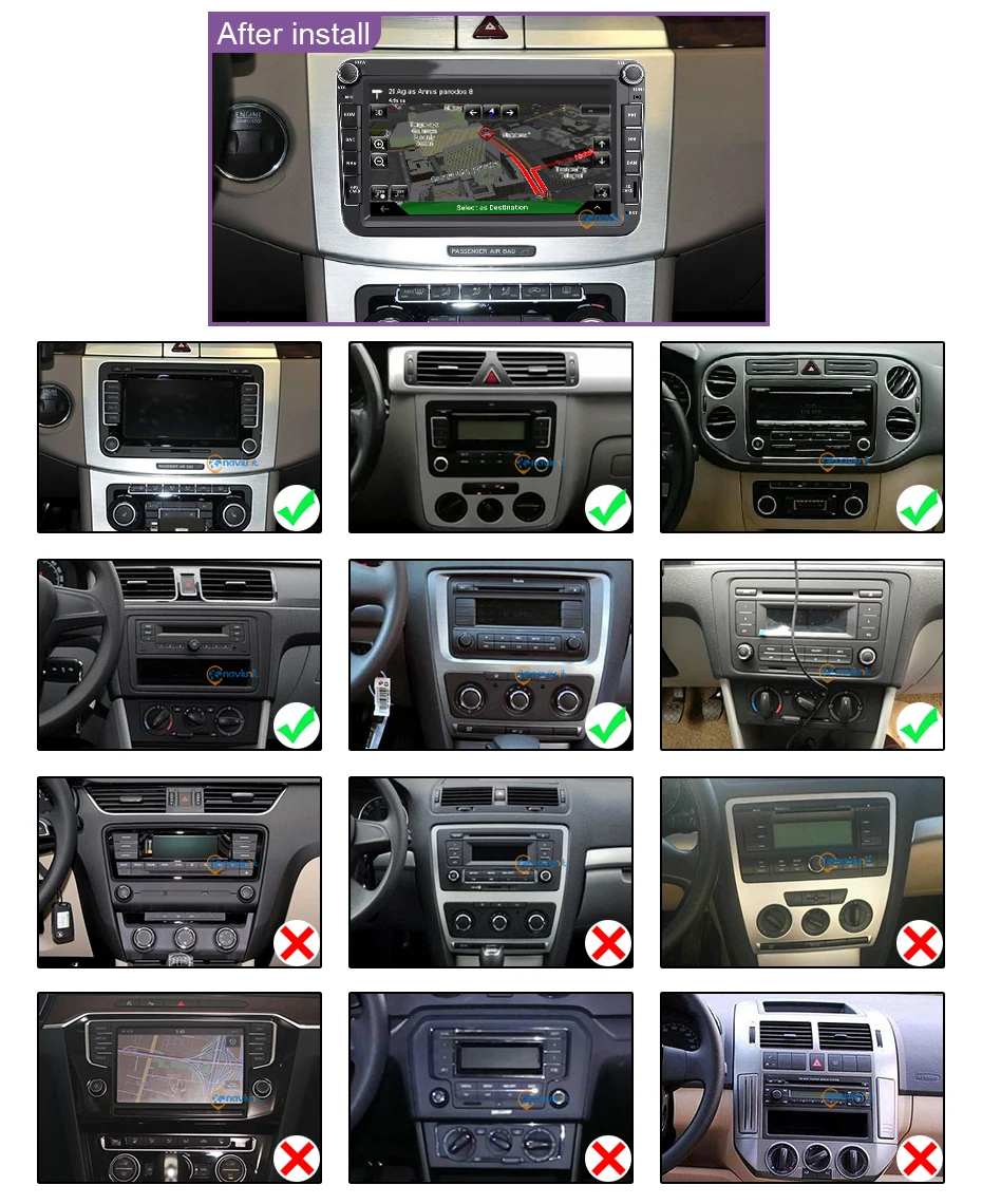 Тик означает, что он может установить наше радио.Крест означает, что он не может быть установлен, размер радио отличается от нашего продукта. Если вы все еще не уверены, пожалуйста, оставьте сообщение нашей службе поддержки клиентов. Мы поможем вам.