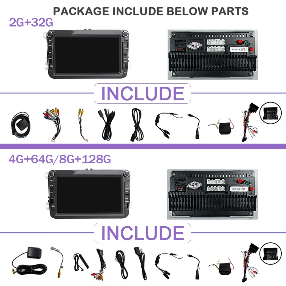 DSP (только 4G + 64G /8G + 128G имеет 32EQ)DSP = Система цифрового усилителя. Он делает звук лучше, чем раньше, и делает радиосигнал лучше, чем раньше. Только менее высокая версия автомобиля имеет заводскую систему DSP на рынке. Если вы покупаете этот чип. В будущем у вашего автомобиля будет DSP система.
