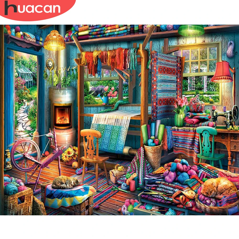 HUACAN раскраска по номеру дом пейзаж для взрослых DIY рамка картина по номерам сад на холсте украшение дома